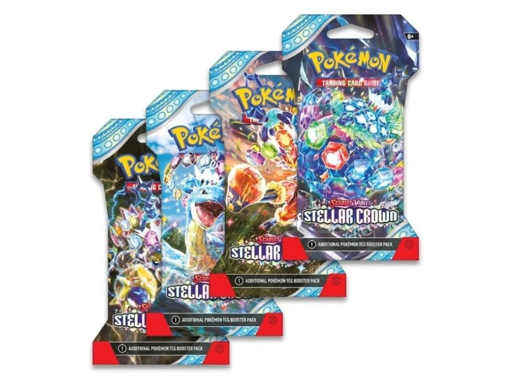 Pokémon TCG: Stellar Crown Sleeved Booster obsahuje 1 balíček zo sady Stellar Crown.